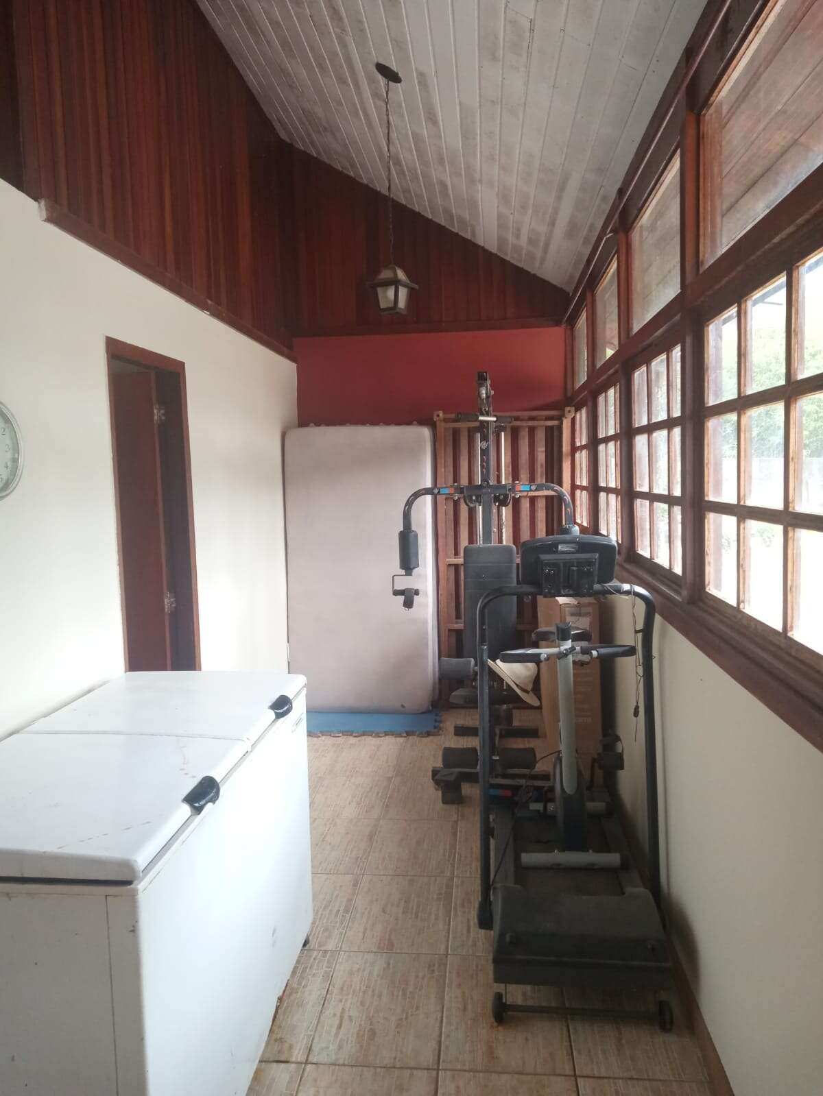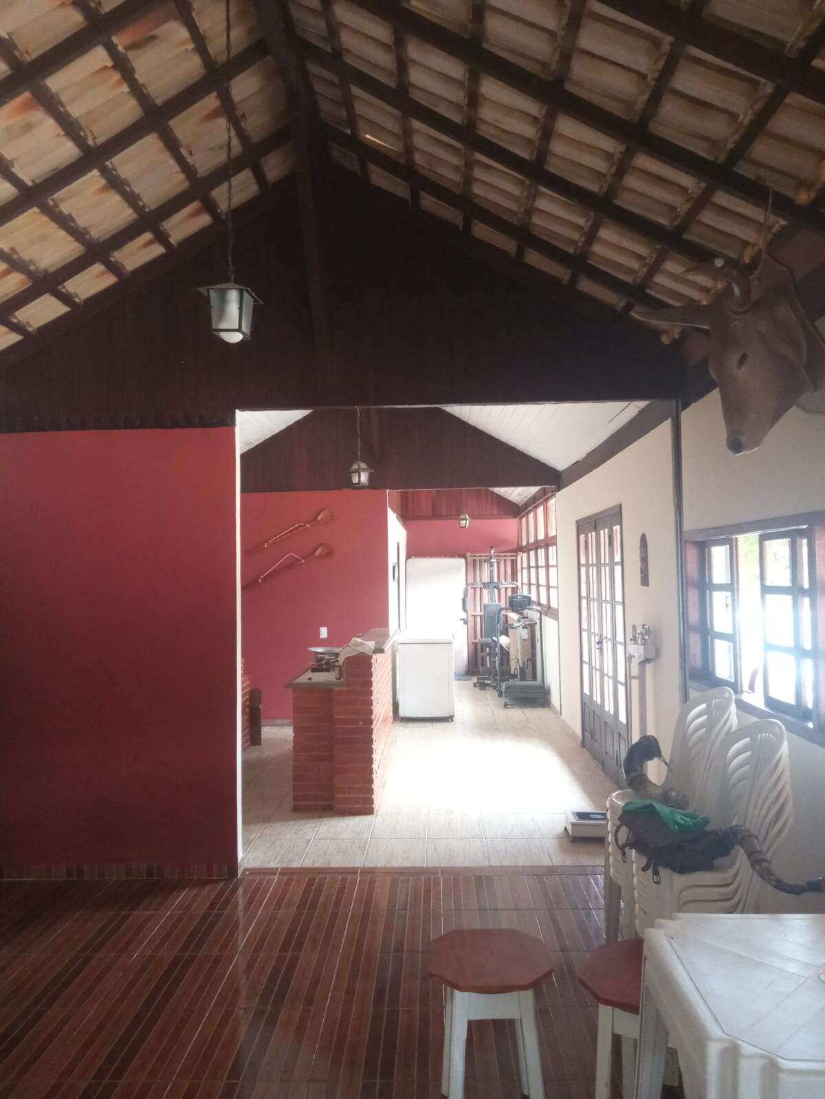 Área gourmet: salão 100m2, churrasqueira/fogão a lenha, banheiro, sauna, varandão, garagem