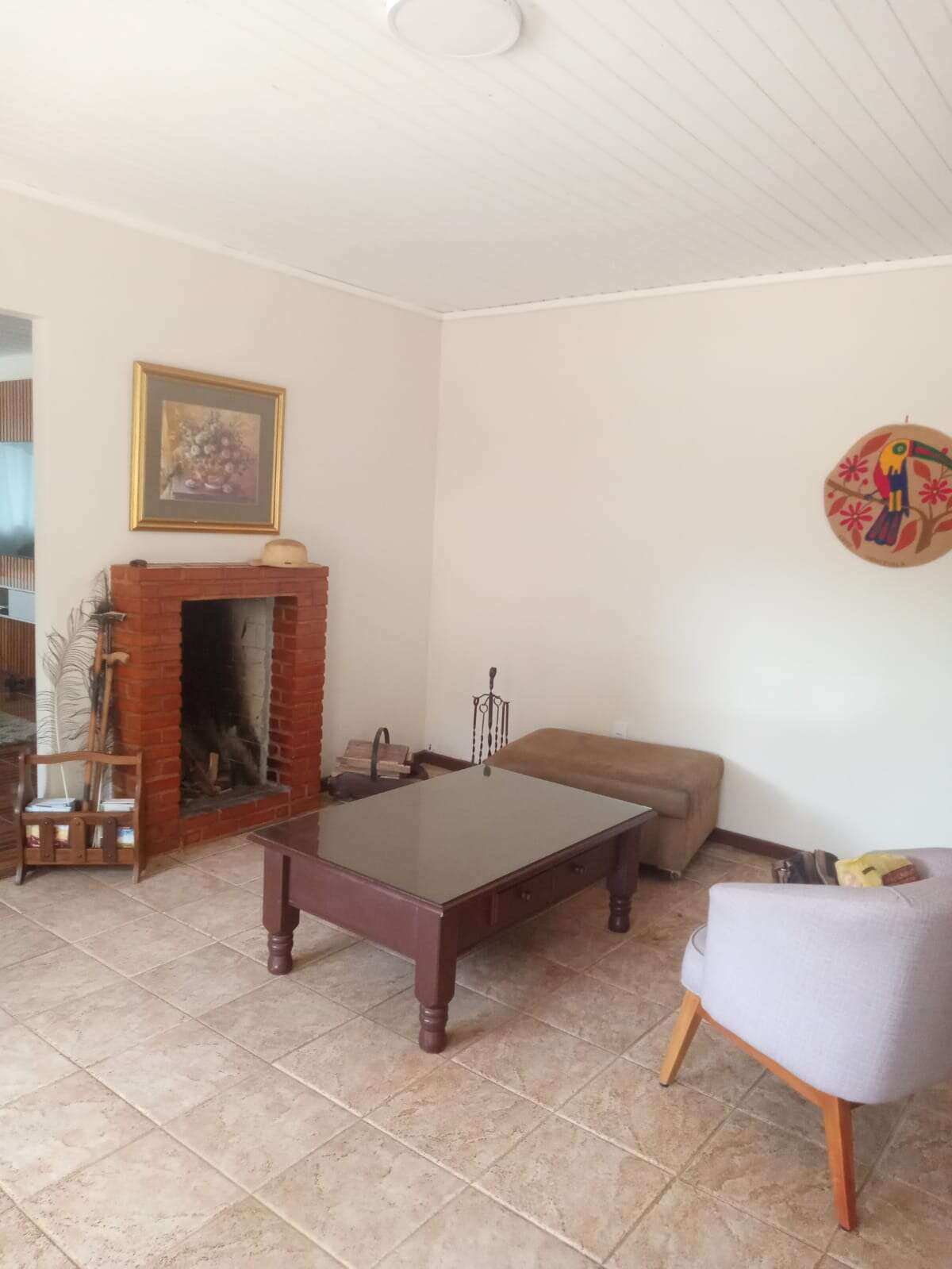 Suíte grande c closet, sala ampla, cozinha conceito aberto ampla, sala de estar com lareira, banheiro social, area de serviço